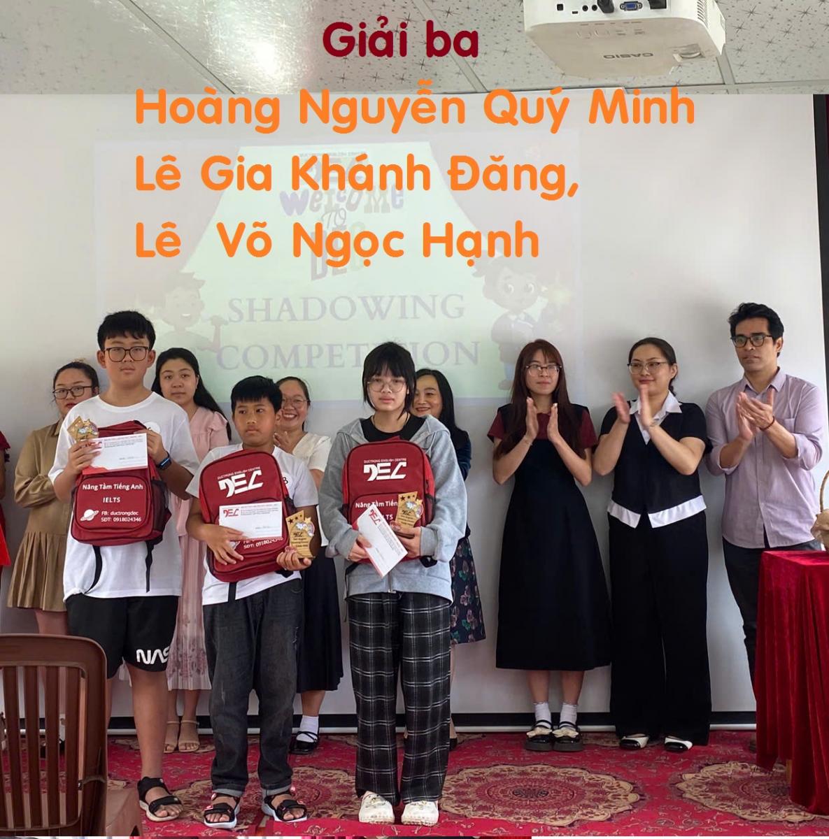 + Giải Ba: em Hoàng Nguyễn Quý Minh, em Lê Gia Khánh Đăng, em Lê Võ Ngọc Hạnh